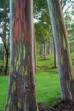 Ale dlaczego to drzewo wygląda jak pomalowane? Odpowiedź jest prosta- kora tych drzew zmienia się wraz z porami roku. Jednak nie na całej jej powierzchni więc tworzą się kolorowe plamy; gdy drzewo dojrzewa kora barwi się na niebiesko następnie na pomarańczowo, fioletowo i bordowo tworząc w ten sposób piękny efekt. Rainbow Eucalyptus rośnie w Nowej Gwinei, na Filipinach i w Nowej Brytanii.